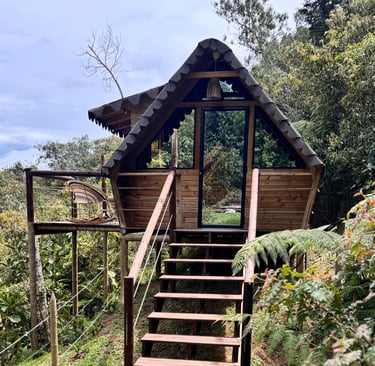 La casa en el árbol inspirada en nuestro visitante más frecuente: El pájaro Barranquero. Entre árboles y rodeada de naturaleza.